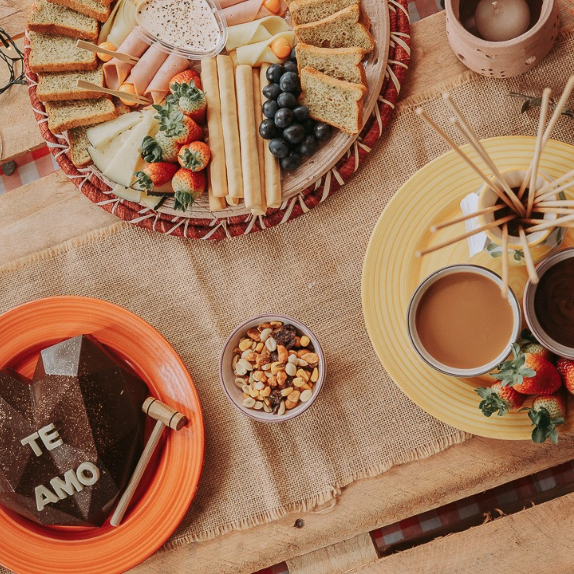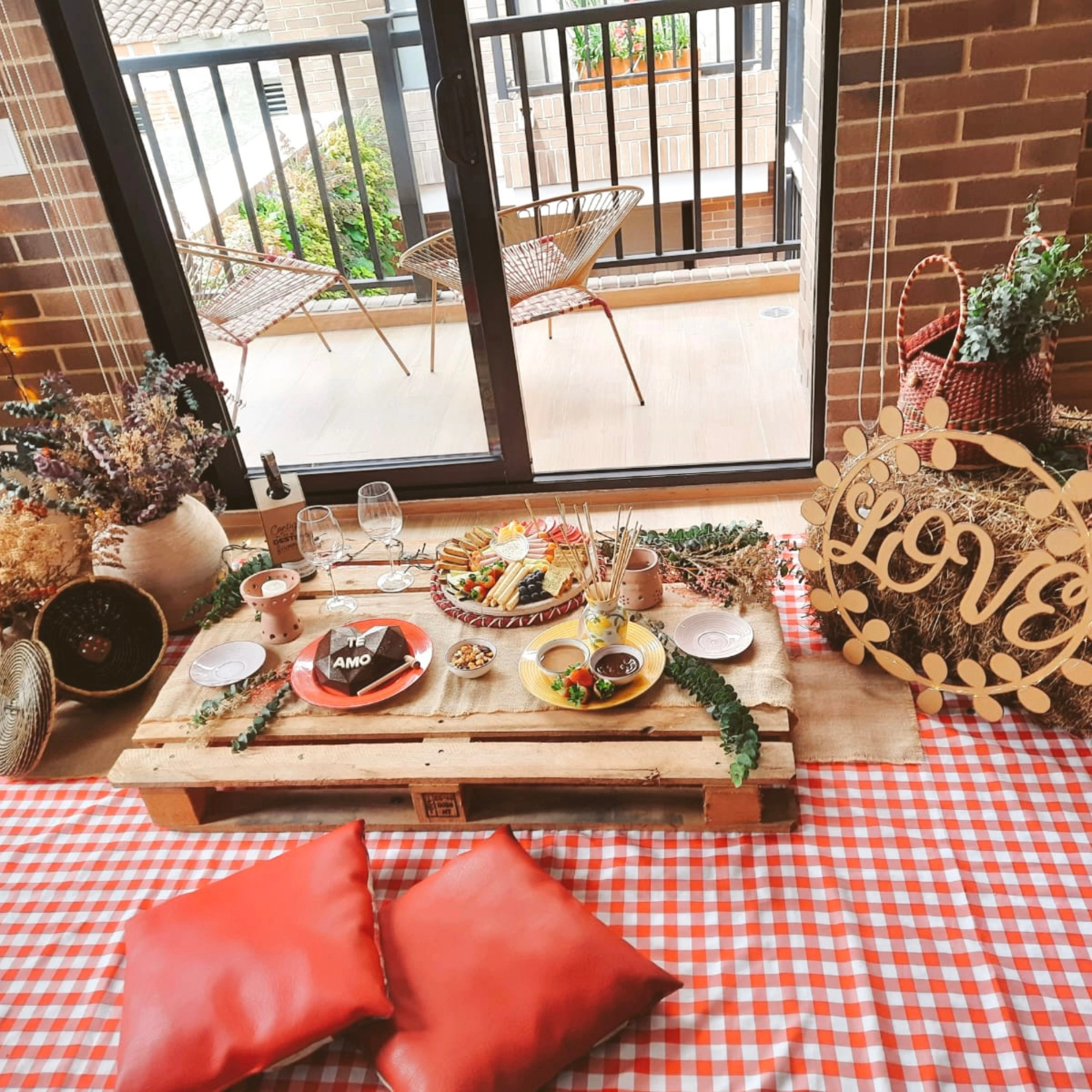 Disfruta de tu plan con una ambientación especial y acogedora. Vive una experiencia inolvidable con una decoración en la habitación tipo picnic, acompañada de una selección gastronómica que incluye tabla de quesos y madurados, corazón de chocolate, frutos de temporada con salsa de chocolate y frutos secos.